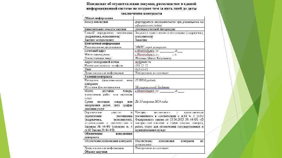 - Заказчик обязан разместить в единой информационной системе извещения об осуществлении закупки у единственного поставщика не позднее чем за 5 дней до даты заключения контракта, при условии, что закупка осуществляется на основании пункта 14 статьи 93 Закона № 44 -ФЗ.