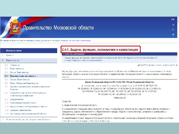 Сведения о полномочиях государственного органа, задачах и функциях структурных подразделений указанных органов, а также перечень законов и иных нормативных правовых актов, определяющих эти полномочия, задачи и функции Перечень полномочий органа исполнительной власти Перечень задач органа исполнительной власти Функции органа исполнительной власти Нормативные правовые акты, определяющие полномочия органа исполнительной власти: Перечень федеральных нормативных правовых актов Тексты федеральных нормативных правовых актов Перечень нормативных правовых актов субъекта Российской Федерации Тексты нормативных правовых актов субъекта Российской Федерации Устав или иной документ, закрепляющий полномочия за органом исполнительной власти Перечень структурных подразделений