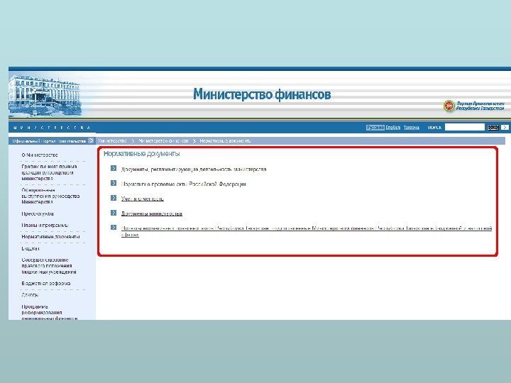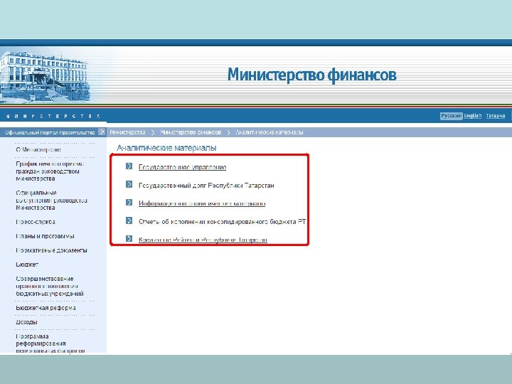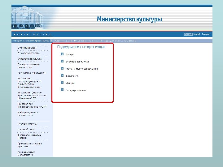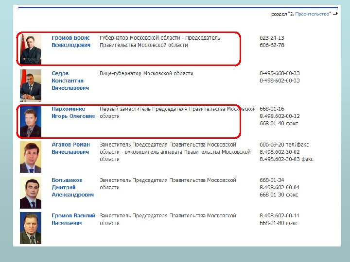 Этап 1. Поиск информации на сайте с использованием навигационной системы сайта (Структура правительства)