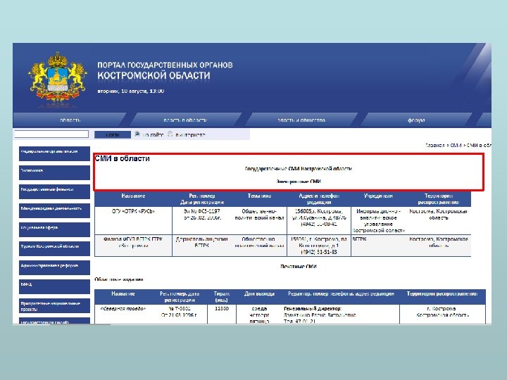 Сведения о средствах массовой информации, учрежденных государственным органом (при наличии) Перечень СМИ Адрес индекс населенный пункт улица дом Электронная почта Номера телефонов Официальные сайты Сведения о финансировании (отсутствии финансирования) из бюджета средств массовой информации