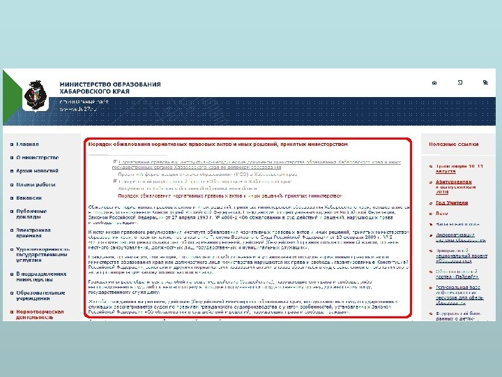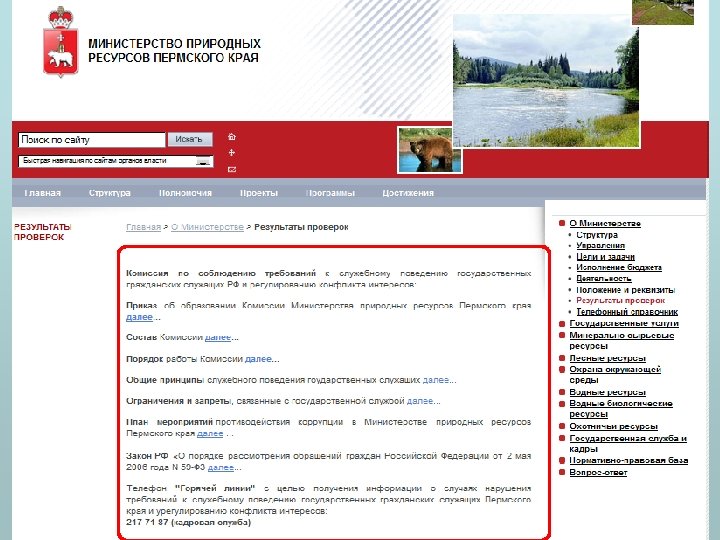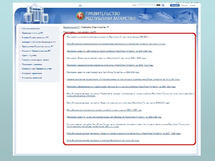 Оценка выполнения Требований к технологическим, программным и лингвистическим средствам официальных сайтов субъекта РФ 5 Навигационная доступность информации на сайте а Любой документ или информация должна быть доступна не более чем за 5 переходов по сайту с использованием меню навигации б Вывод информации о размещении материала на сайте в г д Общие элементы управления сайтом - главное меню - ссылка на главную страницу - карта сайта - наименование исполнительного органа государственной власти Заголовок страницы и информации - содержание (назначение) страницы - наименование раздела сайта - наименование отображаемого документа Адрес страницы - соответствие структуре сайта - соответствие правилам транслитерации или использование кирилической кодировки 6 Средства защиты информации официальных сайтов 7 Информация размещается на официальном сайте на русском языке