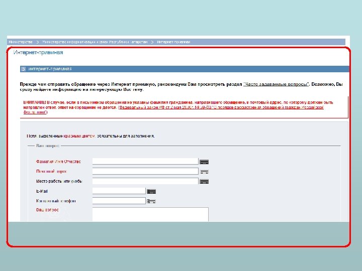 Наименование и структуру государственного органа, почтовый адрес, адрес электронной почты (при наличии), номера телефонов справочных служб государственного органа Полное наименование ИОГВ Почтовый адрес индекс населенный пункт улица дом Телефон справочной службы Электронный адрес