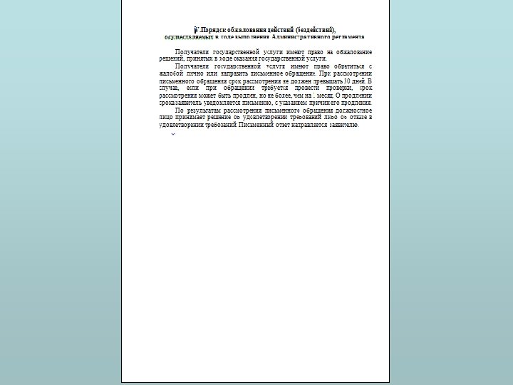 Порядок обжалования действий (бездействия) должностного лица, а также принимаемого им решения при исполнении государственной функции (предоставлении государственной услуги) а) в части досудебного (внесудебного) обжалования указываются: -информация для заявителей об их праве на досудебное (внесудебное) обжалование -предмет досудебного (внесудебного) обжалования; -исчерпывающий перечень оснований для отказа в рассмотрении жалобы либо приостановления ее рассмотрения; -основания для начала процедуры досудебного (внесудебного) обжалования; -права заявителя на получение информации и документов, необходимых для обоснования и рассмотрения жалобы; -вышестоящие органы государственной власти и должностные лица, которым может быть адресована жалоба заявителя в досудебном (внесудебном) порядке; -сроки рассмотрения жалобы; -результат досудебного (внесудебного) обжалования применительно к каждой процедуре либо инстанции обжалования; б) в части судебного обжалования указываются сроки обжалования и юрисдикция суда, в который подается соответствующее заявление, в соответствии с законодательством Российской Федерации.
