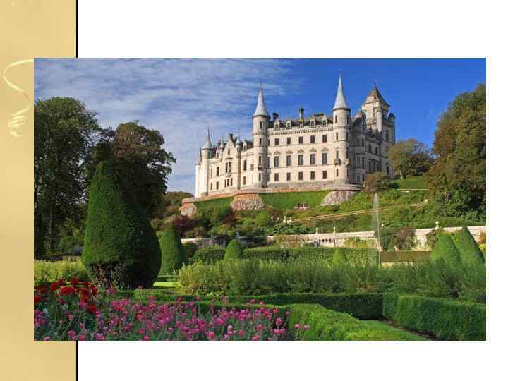 Данробін • Одна з найбільших будівель Північного Високогір'я Шотландії, замок Данробін в графстві Сазерленд, побудований у французькому стилі і зобов'язаний своїм зовнішнім виглядом серу Чарльзу Баррі, архітектору Вестмінстерського палацу.