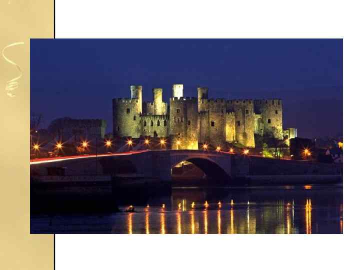 замок Конуі • Ще один із замків, побудованих Едвардом I, замок Конуі, увінчаний вісьмома величезними баштами, знаходиться на скелястому виступі на північному узбережжі Уельсу. Кажуть, цей замок один з найбільш збережених середньовічних укріплень у Великобританії.