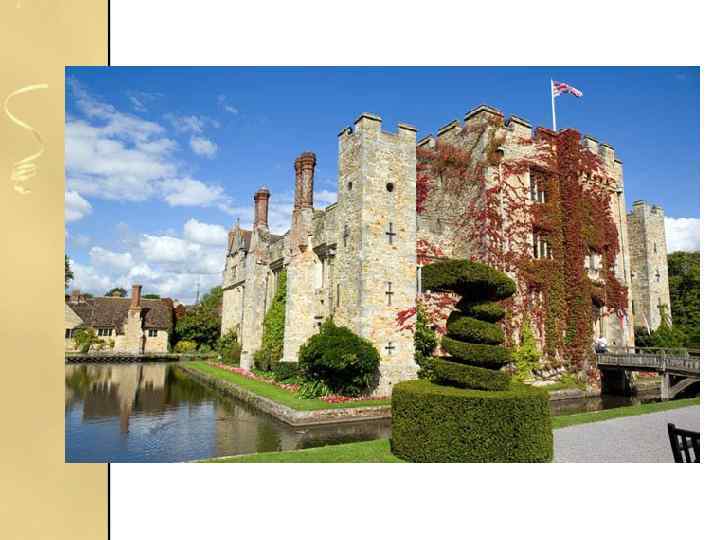 Замок Хівер • Невеликий, але ідеальний на вигляд, замок Хівер був домом дитинства Анни Болейн, хоча і був пізніше переданий четвертій дружині Генріха VIII Анні Клевській як частина їхнього договору про розірвання шлюбу. У 1903 році його купив і відновив американський мільйонер Вільям Валдорф Астор, який також додав до замку сади і озеро.