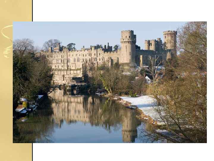 Замок в Уоріку • Вільгельм Завойовник наказав звести замок в Уоріку в 1068 році, але дерев'яний паркан і стіни не мали нічого спільного з кам'яною фортецею з баштами, якою замок є зараз. У 15 столітті, коли ним володів Річард Невілл, замок використовувався для полонення короля Едварда IV.