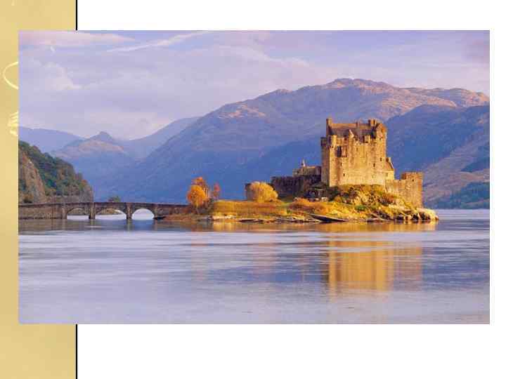 Ейлен-Донан • Часто званий найромантичнішим замком, Ейлен-Донан, розташований на крихітному острівці, що лежить у фіорді Лох-Дуйх в Шотландії. Після того, як замок був майже знищений під час якобітского повстання в 1719 році, він пролежав у руїнах майже 2 сторіччя, але був відновлений на початку 20 століття.