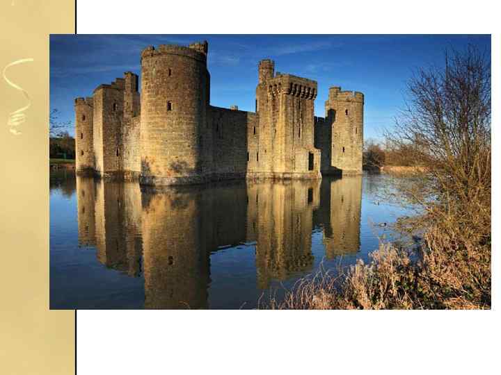 Бодіан • Замок Бодіан, обнесений ровом, знаходиться в графстві Східний Суссекс і спочатку належав родині Делінгрідж, проте в даний час знаходиться під патронажем організації National Trust. На жаль, не дивлячись на те, що зовні замок виглядає точно так само, як і коли був побудований в 14 столітті, внутрішня його частина лежить в руїнах.