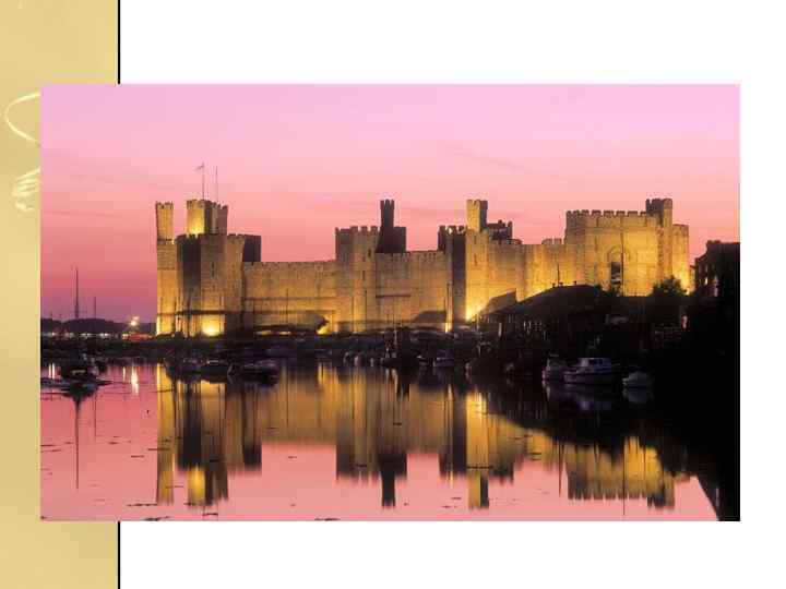 Карнарвон • Імпозантний замок Карнарвон в північному Уельсі був побудований королем Едвардом I в спробі зміцнити своє панування в недавно завойованому Англією регіоні. Кажуть, незвичайний дизайн замку навмисно повинен нагадувати стіни Константинополя, як і візантійську архітектуру в цілому.