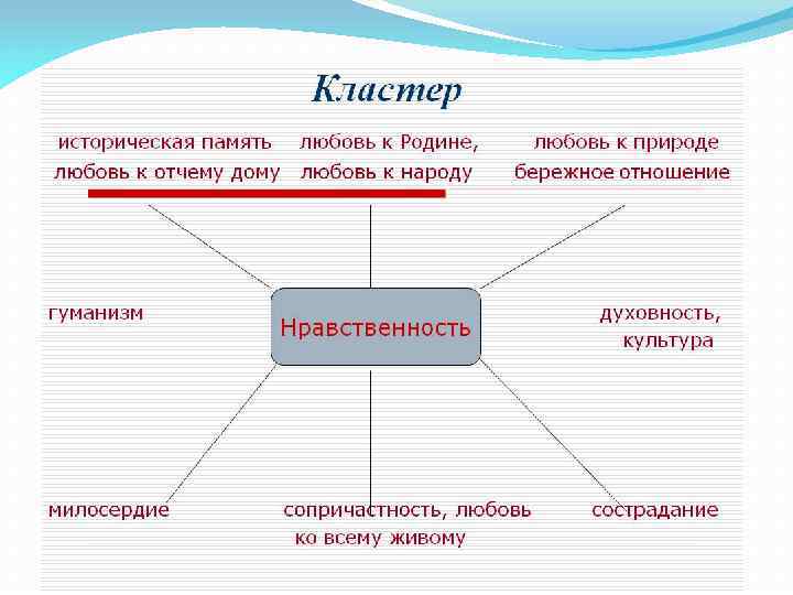 Развитию творческого потенциала учащихся способствуют приемы и задания: Кластер (от англ. Cluster - гроздь) – это способ графической организации материала, позволяющий сделать наглядным те мыслительные процессы, которые происходят при погружении в тот или иной текст.