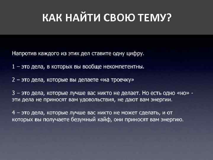 КАК НАЙТИ СВОЮ ТЕМУ?