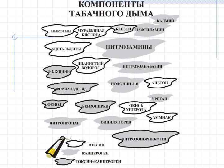 Занятие 5 Курение и здоровье Компоненты табачного дыма. Влияние курения на индивидуальное здоровье. Миф о «лёгких» сигаретах. Оценка статуса курения (типа курительного поведения). Оценка степени никотиновой зависимости и мотивации к отказу от курения. Причины закуривания и курения. Почему люди курят? Современные методы лечения табакокурения. Отказ от курения: чего могут опасаться пациенты?