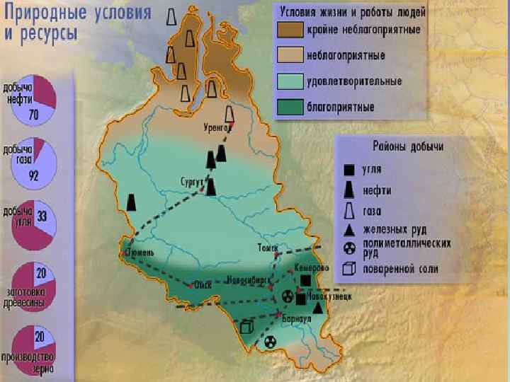 Центр Отрасль специализации Новокузнецк металлургия Белово цветная металлургия Кузбасс горное и металлургическое оборудование Новосибирск станкостроение, приборостроение, энергетическое машиностроение, сельскохозяйственное машиностроение, оборонные заводы Рубцовск, Барнаул сельскохозяйственное машиностроение Омск, Томск оборонные заводы Кемерово химическая промышленность Нижневартовск, Сургут, Уренгой, Янбург нефтяная и газовая промышленность Междуреченск, Асино лесная промышленность