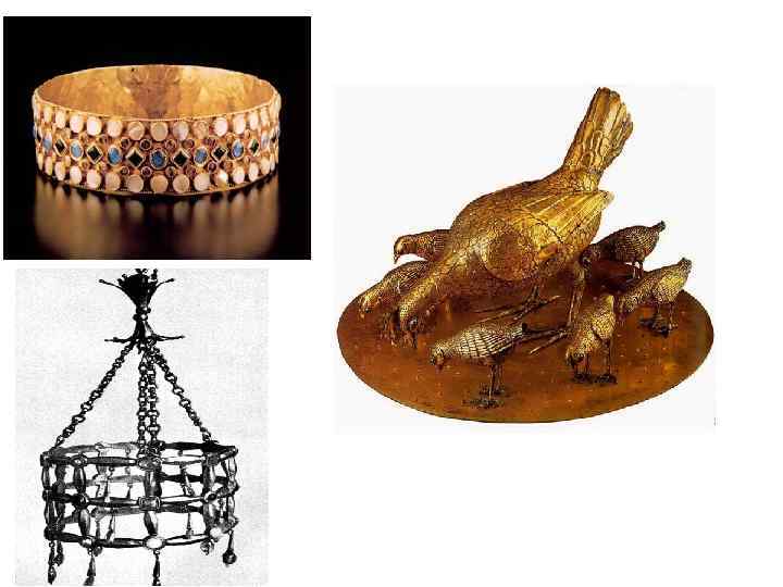 ДОРОМАНСКИЙ ПЕРИОД 1. ДПИ (Орнаментальное искусство): – развитие ювелирного искусства: фибулы, оружие, декоративная утварь, предметы христианского культа; –декоративные с яркими цветовыми сочетаниями композиции; – преобладание орнаментальных мотивов над сюжетными; – развитие стилей: тератологического (чудовищного, «звериного» ); филигранного, основанного на украшении предметов золотыми или серебряными нитями или «зернами» ; полихромного или готского – сочетающего золото с цветными камнями или окрашенным стеклом. 2. Архитектура • Основной тип храмового сооружения – трехнефная базилика без трансепта. • Крипта – полуподвальное помещение со сводами и подпирающими их столбами, строившееся под алтарем. 3. Изготовление книги