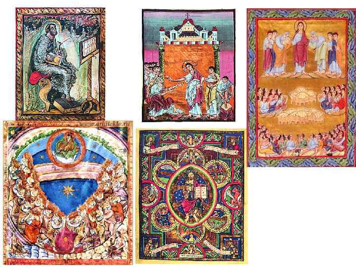 Роль монастырей как культурных центров эпохи • В монастырях разрабатывались технические устройства; • В монастырях открывались скриптории, где переписывались книги (Аахенскмя академия карла Великого); • В монастырях развивается изобразительное искусство в связи с изготовлением книг; • В монастырях сохранялись знания по врачеванию и другим областям науки.
