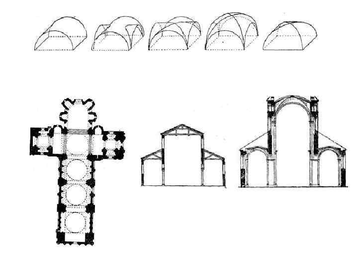 Черты романской архитектуры - рациональная структура, прочность, надежность, основательность, - монументальность, простота и массивность форм, - мощь и приземленность, горизонтальные планы, - толщина и непробиваемость стен – один из важнейших критериев совершенства постройки, - форма базилики, - широкое использование полукруглых (полуциркульных) арок и сводов, опирающихся на колонны, - кубическая капитель колонн, - многофигурные скульптурные композиции на фасадах