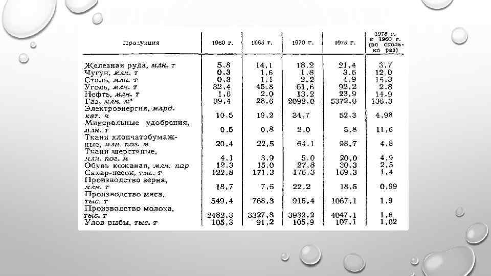 На мартовском (1965 г. ) Пленуме ЦК КПСС была предпринята очередная попытка разработки эффективной аграрной политики. Его решения предусматривали систему мер направленных на подъем экономики колхозов и совхозов: Установлены твердые планы на ряд лет; -В 2 раза поднялись закупочные цены на сельхозпродукцию; -Введены надбавки на сверхплановую продажу; -Изменены условия взимания подоходного налога с колхозов; -Укреплена материально-техническая база хозяйств; -Возросли ассигнования на нужды села.