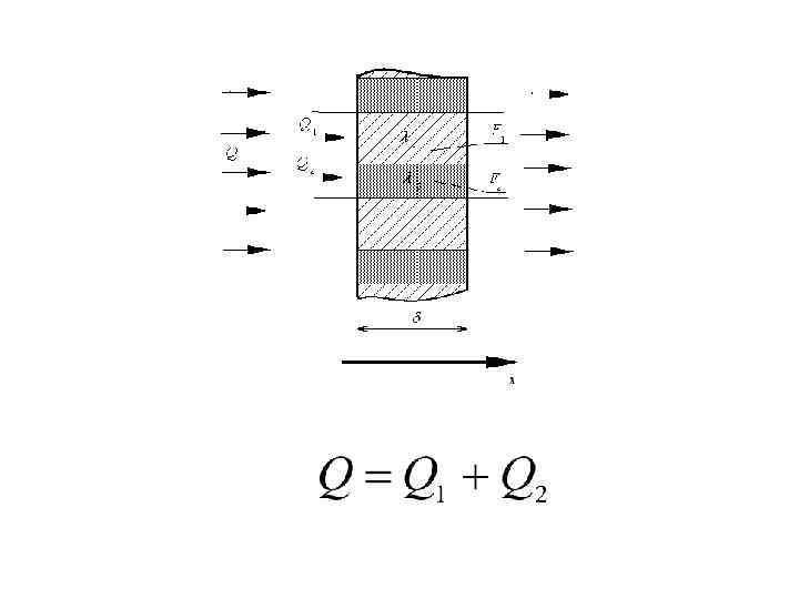 • Для определения плотности теплового потока, проходящего через стенку в направлении оси Оx, воспользуемся законом Фурье • Учитывая, что