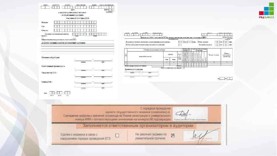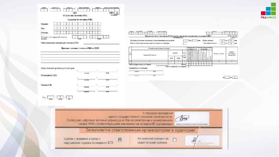 Возможные ситуации в аудитории УДАЛЕНИЕ В СЛУЧАЕ НАРУШЕНИЯ ПОРЯДКА ПРОВЕДЕНИЯ ЕГЭ: • • ППЭ-05 -02 Отметка в бланке регистрации и подпись организатора Подпись участника в форме ППЭ-05 -02 ППЭ-21 (подпись члена ГЭК) ДОСРОЧНОЕ ЗАВЕРШЕНИЕ ЭКЗАМЕНА ПО УВАЖИТЕЛЬНОЙ ПРИЧИНЕ: • • ППЭ-05 -02 Отметка в бланке регистрации и подпись организатора Подпись участника в форме ППЭ-05 -02 ППЭ-22 (подпись члена ГЭК, подпись медработника) АПЕЛЛЯЦИЯ О НАРУШЕНИИ УСТАНОВЛЕННОГО ПОРЯДКА ПРОВЕДЕНИЯ ГИА: • • Подается до выхода из ППЭ-02, ППЭ-03