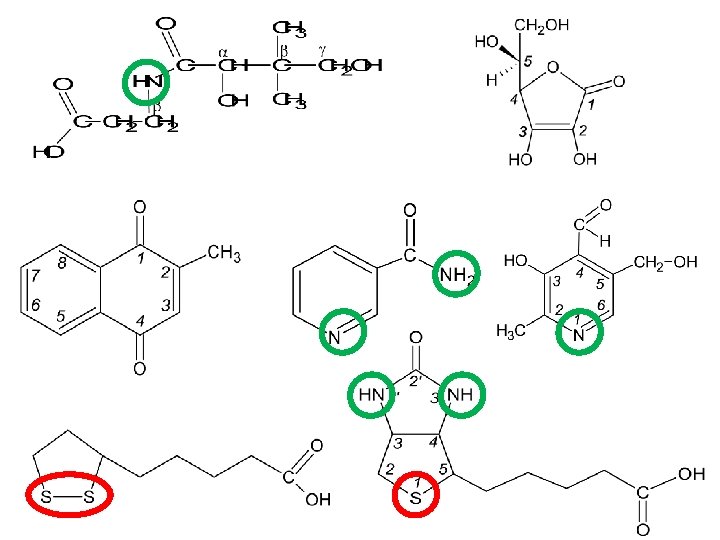 В 5 - ПАНТОТЕНОВАЯ КИСЛОТА Коферментные формы – коэнзим А, 4 -фосфопантетеин Биологическая роль: - активация ацетата и жирных кислот - окисление и синтез ВЖК - синтез холестерина и других стероидов, - синтез кетоновых тел - ацилирование в синтезах гема и ацетилхолина - Окислительгное декарбоксилирование пирувата и -кетоглутарата Всасывание различных веществ в ЖКТ