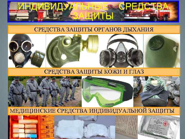 ИНДИВИДУАЛЬНЫЕ СРЕДСТВА ЗАЩИТЫ СРЕДСТВА ЗАЩИТЫ ОРГАНОВ ДЫХАНИЯ СРЕДСТВА ЗАЩИТЫ КОЖИ И ГЛАЗ МЕДИЦИНСКИЕ СРЕДСТВА ИНДИВИДУАЛЬНОЙ ЗАЩИТЫ