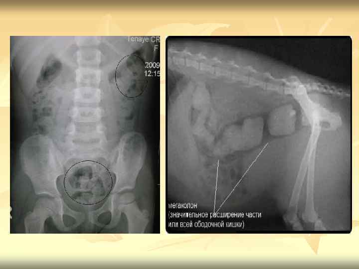 Диагностический поиск I этап Оценка клинических данных и рентгенологическое исследование кишечника, которое позволит оценить анатомическое состояние прямой кишки: раздражение или нормальное ее строение при функциональных расстройствах, опухоли, аномалии или мегаколон-характерные обструкции, гипоганглиоза, идиопатического расширения. II этап Колоноскопия, гистологическое и гистохимическое исследование биоптатов слизистой оболочки кишки.