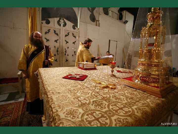 «Сегодня, как мы знаем, главной святыней алтаря является престол. Это четырехугольный стол, который символизирует Трон Божий. На престоле лежит Святое Евангелие, кресты, стоит Дарохранительница со святыней Тела и Крови Христовых. Именно на престоле мы совершаем Литургию.
