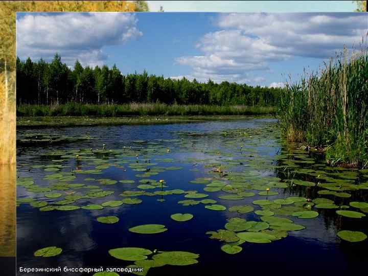 БЕРЕЗИНСКИЙ БИОСФЕРНЫЙ ЗАПОВЕДНИК Заповедник, находящийся в северной части Беларуси на расстоянии 120 километров от Минска в направлении на Санкт-Петербург. Расположен на границе Витебской и Минской областей. Центр заповедника — в деревне Домжерицы Лепельского района. Создан для охраны редких видов животных (первоначально создавался для охраны бобров). Входит во всемирную сеть биосферных заповедников ЮНЕСКО.