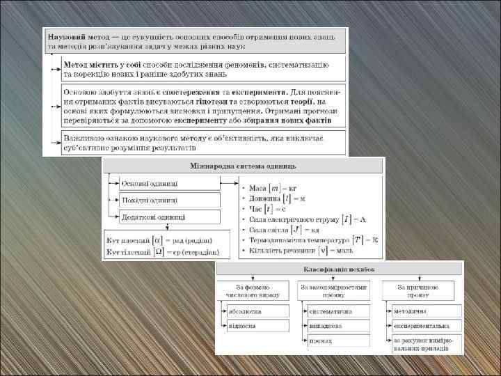 ЗАКРІПЛЕННЯ НОВИХ ЗНАНЬ І ВМІНЬ • З яких розділів складається шкільний курс фізики? • Яких відомих українських фізиків ви можете назвати? Який внесок вони зробили в розвиток фізики? • Чому фізику називають експериментальною наукою? • Чому під час проведення експерименту виникають похибки? • Запишіть величини, використовуючи кратні та частинні одиниці ü 1200 Дж ü 0, 000 034 А ü 37 000 Вт ü 400 В ü 1200 Ом ü 0, 000002 Кл