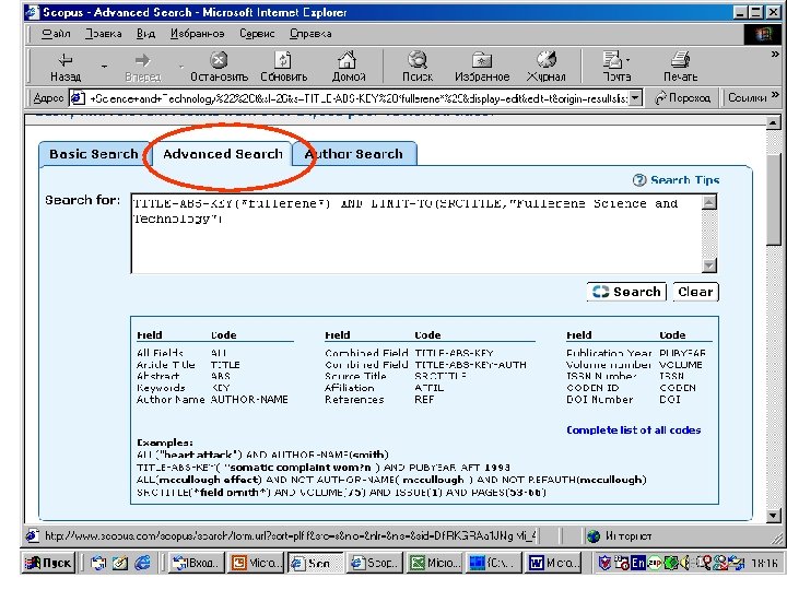 Варианты поиска в БД SCOPUS Basic (простой) advanced (усовершенствованный) Авторский