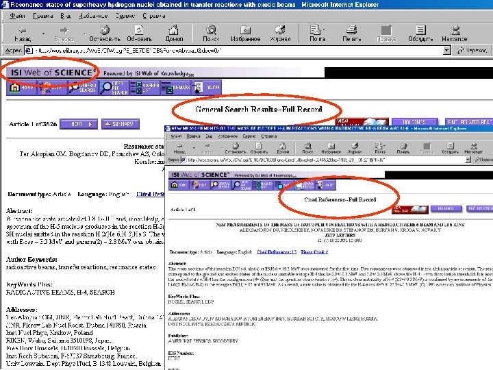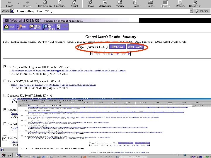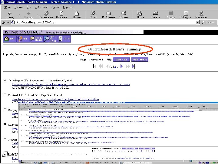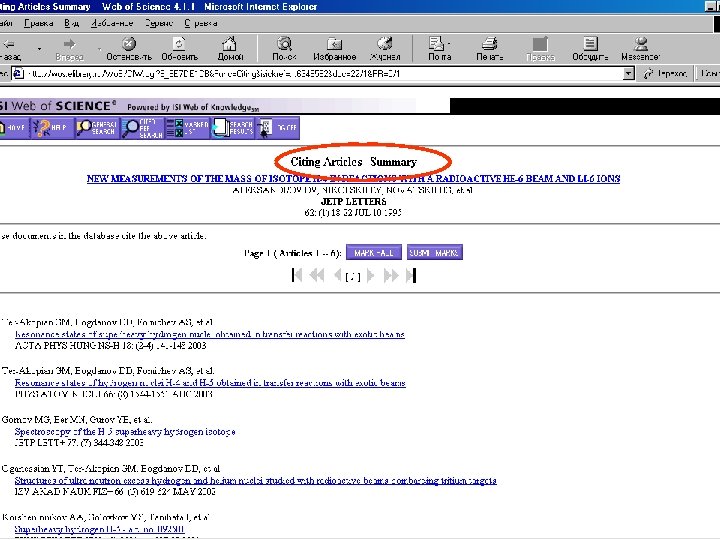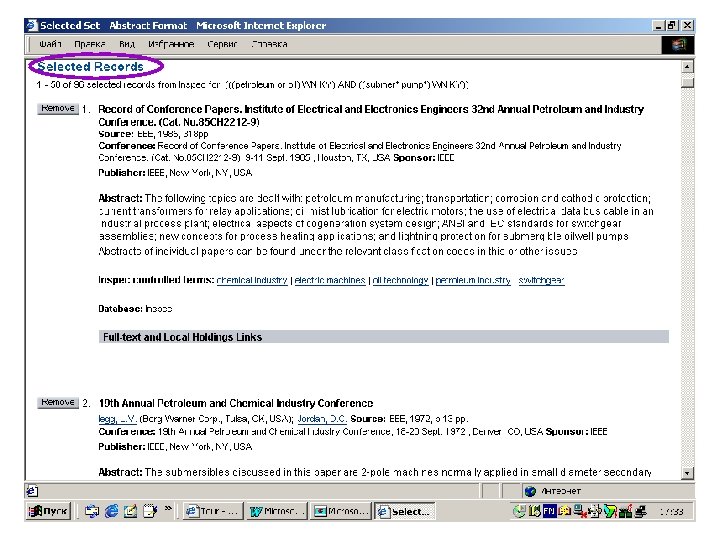 БД ВИНИТИ- первый эшелон вывода результатов поиска