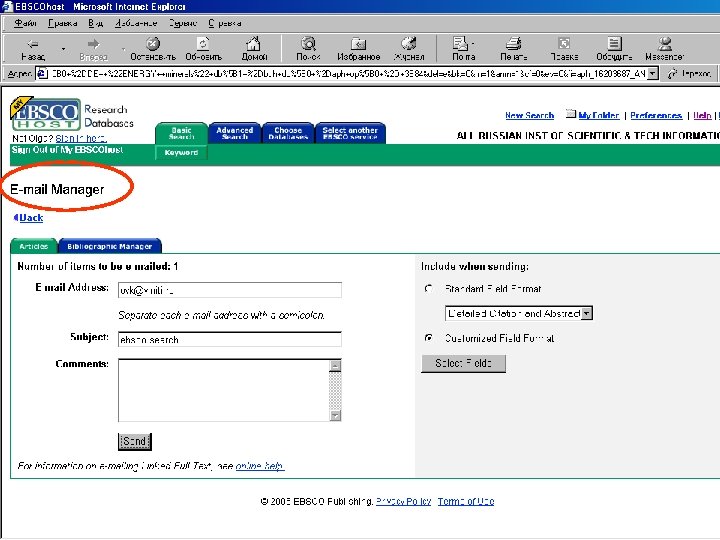 Варианты вывода документов в Ebsco. Продолжение поиска из документа
