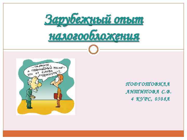 Зарубежный опыт налогообложения ПОДГОТОВИЛА АНТИПОВА С. В. 4 КУРС, 0508 А