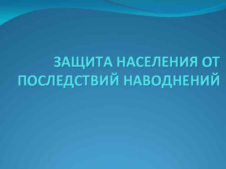 ЗАЩИТА НАСЕЛЕНИЯ ОТ ПОСЛЕДСТВИЙ НАВОДНЕНИЙ