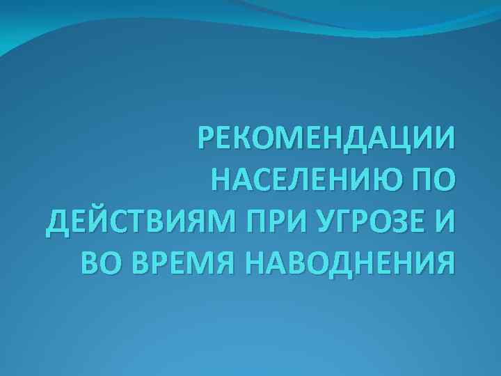 РЕКОМЕНДАЦИИ НАСЕЛЕНИЮ ПО ДЕЙСТВИЯМ ПРИ УГРОЗЕ И ВО ВРЕМЯ НАВОДНЕНИЯ