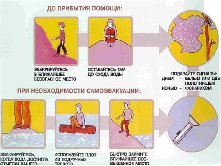 подготовка к наводнению Запомните места хранения лодок, плотов и строительных материалов для их изготовления Заранее составьте перечень документов, имущества и медикаментов, вывозимых при эвакуации Если ваш район часто страдает от наводнений, изучите и запомните границы возможного затопления, а также возвышенные, редко затапливаемые места, рядом с вашим домом
