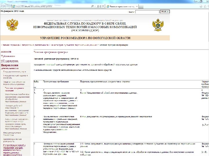 Типовая программа проверки Роскомнадзора http: //35. rsoc. ru/directions/p 1419/p 6830/