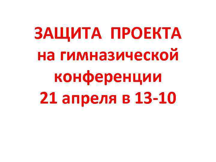 ЗАЩИТА ПРОЕКТА на гимназической конференции 21 апреля в 13 -10