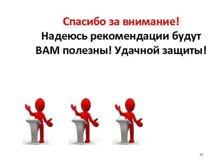 Спасибо за внимание! Надеюсь рекомендации будут ВАМ полезны! Удачной защиты! 15