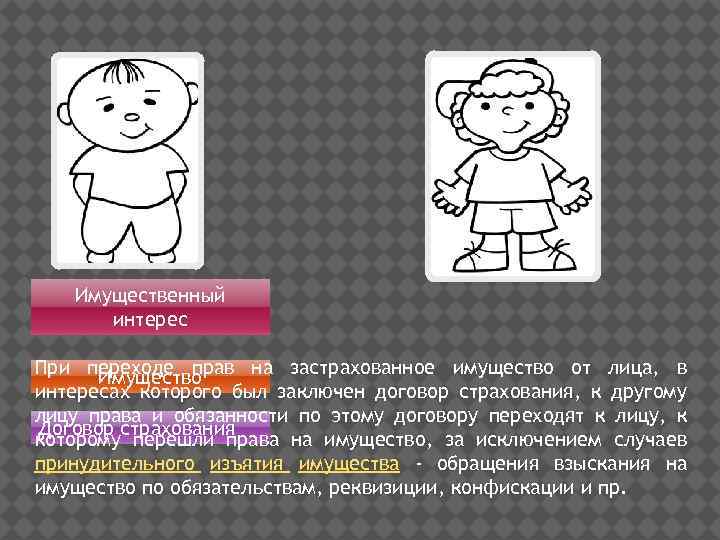 Имущественный интерес При переходе прав на застрахованное имущество от лица, в Имущество интересах которого был заключен договор страхования, к другому лицу права и обязанности по этому договору переходят к лицу, к Договор страхования которому перешли права на имущество, за исключением случаев принудительного изъятия имущества - обращения взыскания на имущество по обязательствам, реквизиции, конфискации и пр.