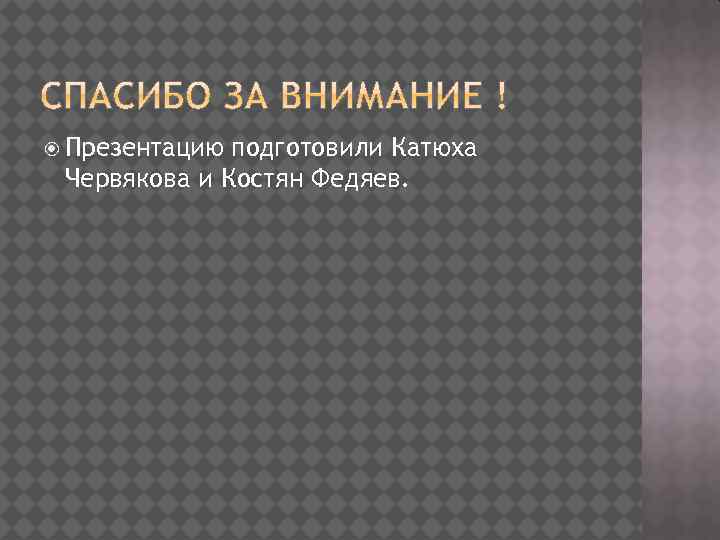 Презентацию подготовили Катюха Червякова и Костян Федяев.