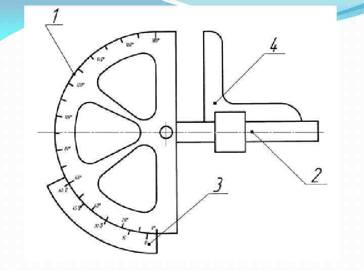 Измерять углы резца можно угломерами различных конструкций. Универсальный угломер состоит из сектора 1, на котором нанесена шкала от 0 до 180 о, измерительной ножки 2, которая поворачивается на оси вокруг центра сектора и может быть закреплена винтом в любом угловом положении. С ножкой связан нониус 3, имеющий 30 делений. Таким образом, по шкале сектора можно отсчитывать углы с точностью 1 о, а по нониусу 2’.