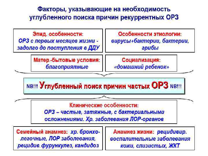 8 и более отитов в течение года 2 и более месяцев а/б терапии Задержка роста и развития 2 и более серьезных синуситов в течении года 2 и более пневмонии в течение года Рецидивирующие абсцессы