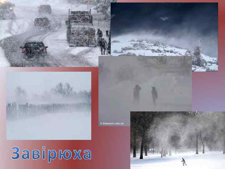 Завірюха (метелиця, хурделиця, хуртовина, сніговій) — атмосферне явище, що являє собою перенесення вітром снігу над поверхнею землі з погіршеннямвидимості. Заметілі зменшують видимість на дорогах, заважають роботі транспорту. У завірюсі може брати участь як сніг, що лежить на землі, так і сніг, який падає з хмар. За цією ознакою розрізняють: поземок, коли більшість сніжинок піднімається на кілька сантиметрів над сніжним покривом низову завірюху, якщо сніжинки піднімаються до 2 м і вище; верхову або загальну завірюху — випадання снігу при сильному вітрі.
