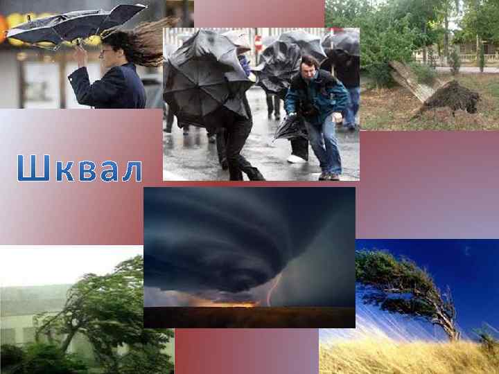 Шквал - різке посилення вітру протягом короткого проміжку часу. Швидкість вітру може перевищувати 30 м/с, тривалість - декілька хвилин.