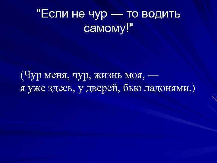 "Если не чур — то водить самому!" (Чур меня, чур, жизнь моя, — я уже здесь, у дверей, бью ладонями. )