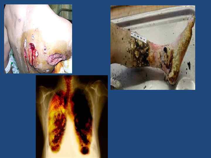 Действие на организм человека В очаге горящего напалма пострадавшие, как правило, получают многофакторные поражения от воздействия горящей зажигательной смеси, тепловой радиации (инфракрасное излучение), дыма и токсичных продуктов горения (угарный газ и др. ). Ожоги от горящего на пострадавшем напалма обычно глубокие, нередко IV степени. Образуется струп темно коричневого или черного цвета, иногда покрытый остатками несгоревшей зажигательной смеси. Из за сильного отека в струпе образуются разрывы, через которые видны пораженные мышцы, сухожилия. По периферии струпа – пузыри, заполненные геморрагическим содержимым. На некотором расстоянии от очага горения возникают дистанционные ожоги с мягким струпом серого цвета и выраженной отечностью тканей. Часто одновременно поражаются лицо и кисти. При ожогах лица из за резкого отека век глазные щели не раскрываются и пострадавшие временно утрачивают способность видеть. Возможны поражения глаз с частичной или полной потерей зрения. Омертвевшие ткани при напалмовых ожогах вследствие значительной глубины поражения отторгаются медленно, нередки гнойные осложнения (затеки, флегмоны, артриты). Рубцы, образующиеся на месте ожоговых ран, гипертрофические или келоидные, часто изъязвляются.