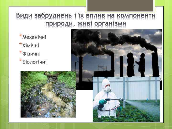 Забруднення — привнесення в природно-антропогенне середовище не характерних для нього фізичних, хімічних, біологічних речовин, агентів, які негативно впливають на людину і живі організми.