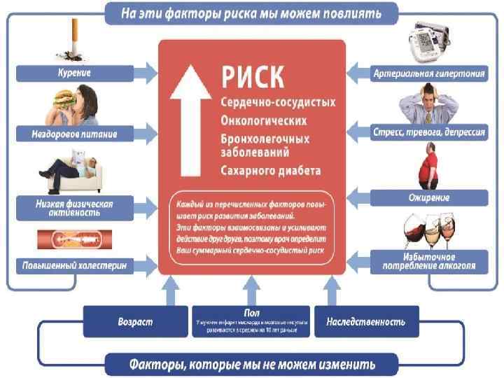 Факторы риска развития СД 2 типа • Возраст ≥ 45 лет. • Избыточная масса тела и ожирение (ИМТ ≥ 25 кг/м 2 *). • Семейный анамнез СД (родители или сибсы с СД 2 типа). • Привычно низкая физическая активность. • Нарушенная гликемия натощак или нарушенная толерантность к глюкозе в анамнезе. • Гестационный СД или рождение крупного плода в анамнезе. • Артериальная гипертензия (≥ 140/90 мм рт. ст. или медикаментозная антигипертензивная терапия). • Холестерин ЛВП ≤ 0, 9 ммоль/л и/или уровень триглицеридов ≥ 2, 82 ммоль/л. • Синдром поликистозных яичников. • Наличие сердечно-сосудистых заболеваний.